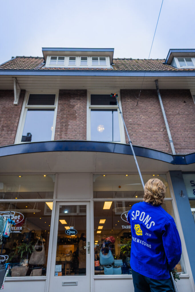Ramen wassen bij winkel Den Boer in Baarn centrum